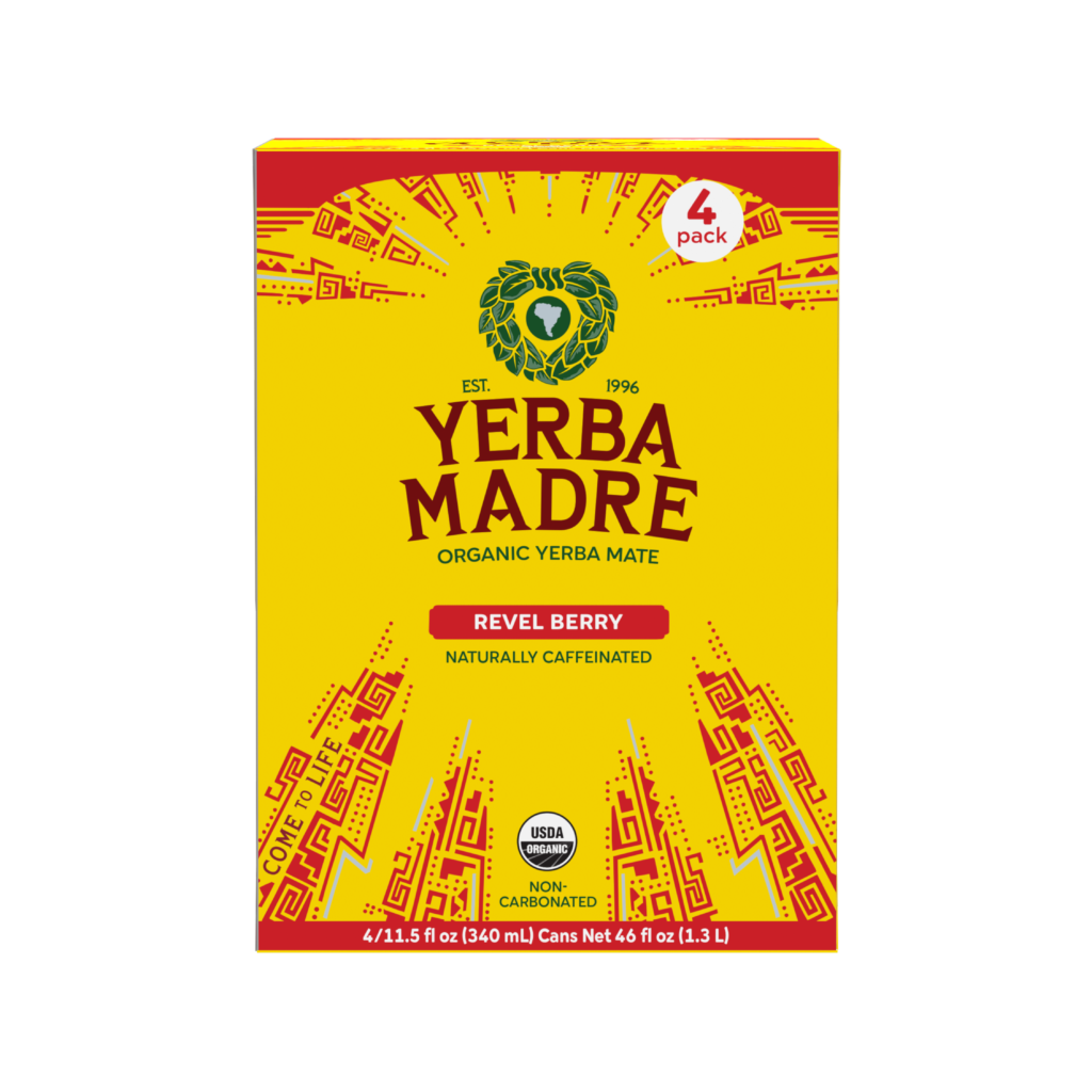 Yerba Madre is a melodic blend of yerba mate, hibiscus flower, and yumberry, with notes of raspberry and blackberry, for energy to keep your spirits high.